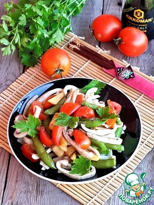 Рецепт «Горячий салат из кальмаров с овощами»: