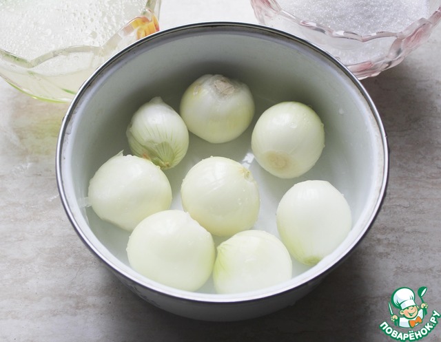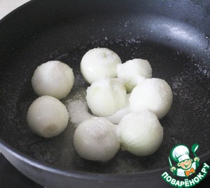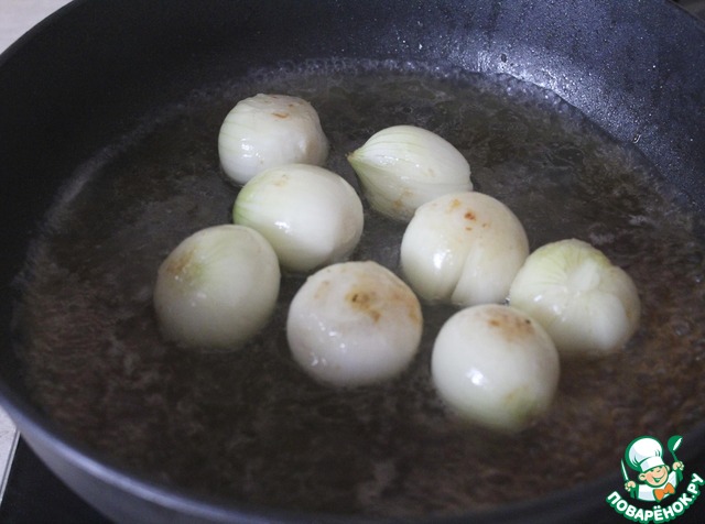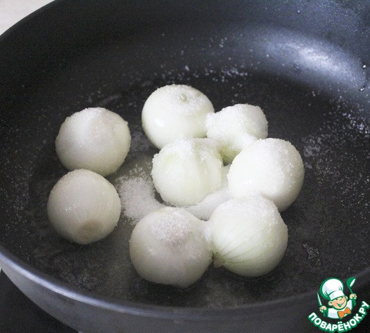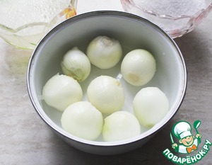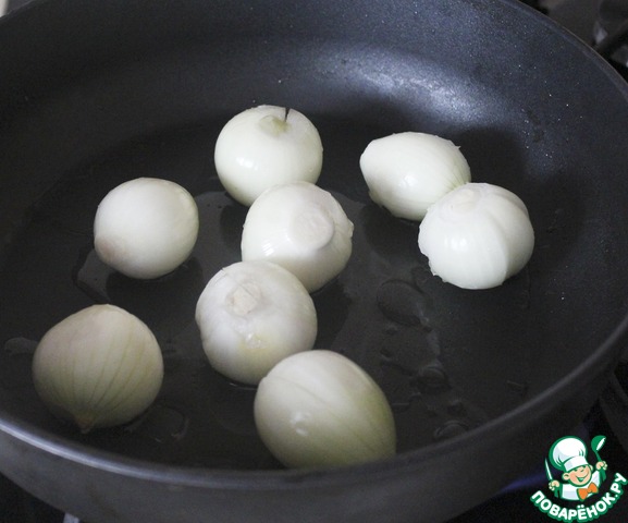 Заранее готовим ингредиенты, так как придется постоянно мешать и некогда будет все искать. Луковицы подбираем небольшие и одинаковые по размеру