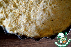 Потом кладем его в смазанную форму, растягиваем пальцами и формируем бортики. -