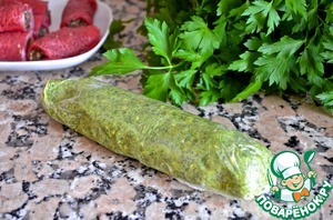 Смешать с размягченным маслом свернуть с помощью пищевой пленки в трубочку и убрать в холодильник до надобности. Это масло прекрасно сочетается со стейком или мясными рулетами с грибами. Если положить кусочек такого масла на горячий отварной картофель, масло растает и станет прекраснейшим соусом из свежей зелени, а картофель получится красивейшим, очень вкусным и праздничным.