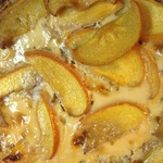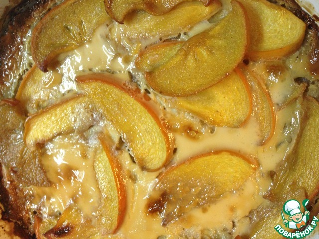 Хурму выкладываем на основу. Заливаем соусом, он не должен закрыть хурму. Выпекаем при температуре 180 еще 30 минут. Пирог должен полностью остыть и только потом вынимать из формы.