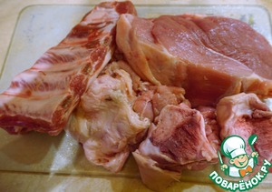 Я взяла лопатку, косточки с кусочками мяса и жира, срезанные с задней части и ребрышки.
