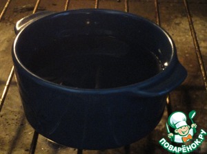 В разогретую до 220-230 градусов духовку ставим жаропрочную емкость с водой.