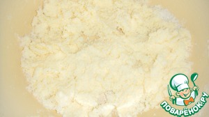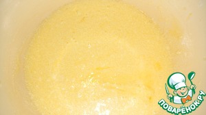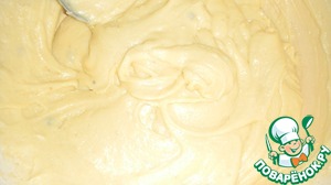 Муку просеять с разрыхлителем и постепенно всыпать к основной массе. Тесто получается довольно густым.