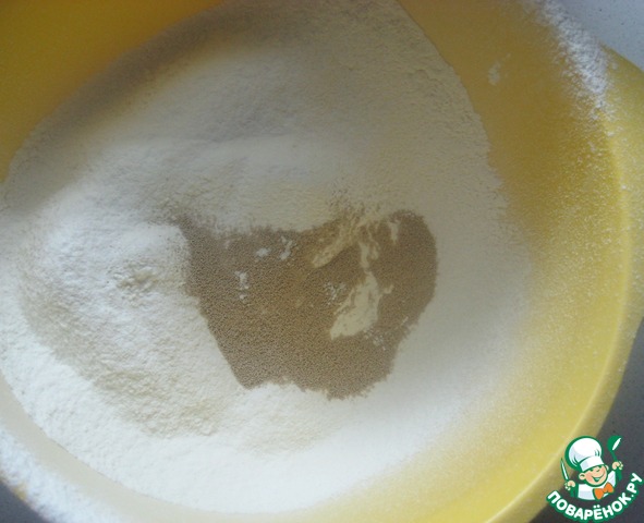 Просеять муку, добавить дрожжи.