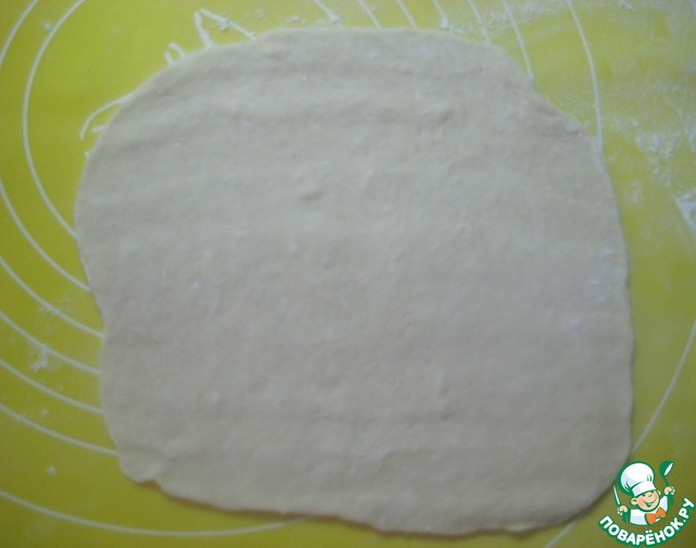Раскатываем кусочек теста в прямоугольник.