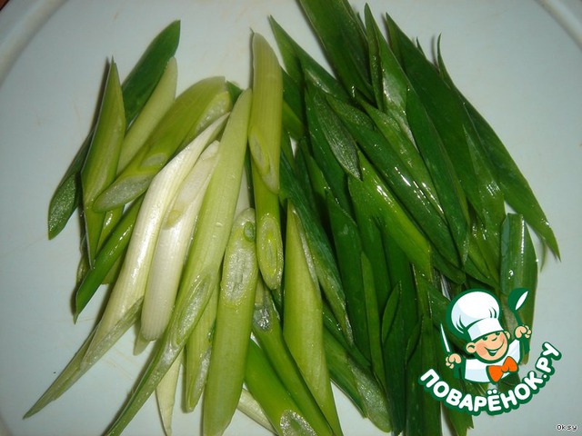 Куриные грудки нарезать длинными полосками. Я резала толщиной с большой палец, лучше порезать еще тоньше.