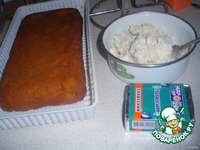 Крем: Раздавить сырок вилкой в небольшой емкости. Налить горячее молоко и немного проварить, пока сырок полностью не расплавится. Добавить сахар, ваниль, масло и хорошо размешивать, до однородности.