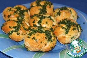 Достаём из духовки горячие, румяные булочки и обильно обмазываем их чесночной смесью.