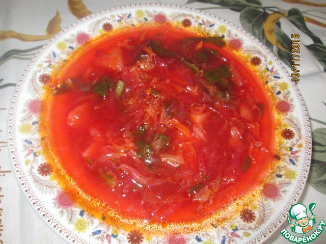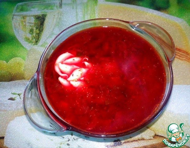 Рецепт «Борщ со свекольной ботвой и чесночными узелками»: