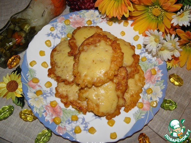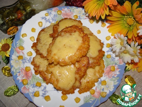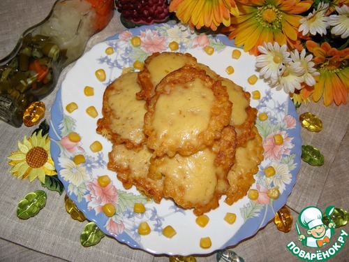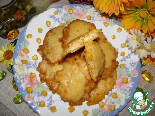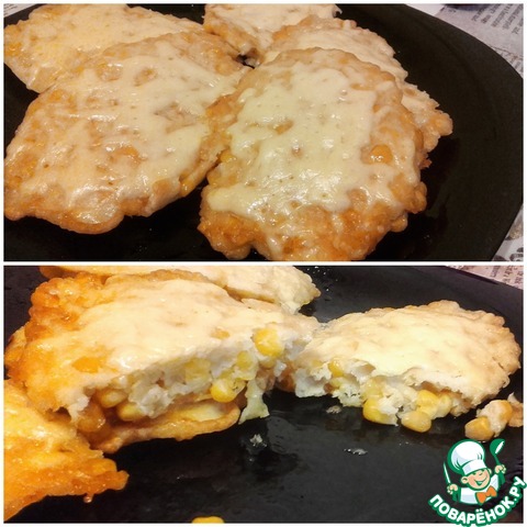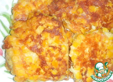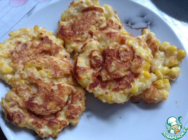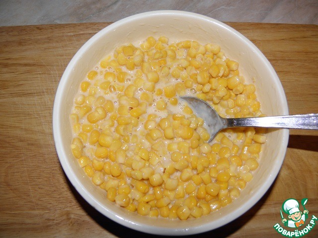 [+5]У нас кукуруза в банках - практически безводная, т.ч. я по совету Оли добавила 100 мл кефира и соды на кончике ч.л. + пару ложек бОльше муки. Спасибо за вкусный ужин!!!!!!!