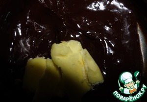 Добавляем сливочное масло, снова перемешиваем до однородности. Отправляем массу в холодильник минут на 20