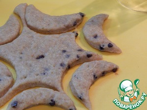 Далее тесто раскатываем толщиной примерно 1 см. Вырезаем из него формочкой любую форму.