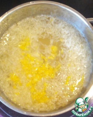 И выливаем смесь в кипящую лимонную воду, помешивая. Это мой способ варить манку без комков, о котором я уже упоминала в своих рецептах