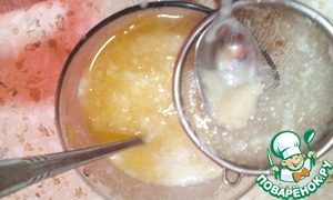 И выливаем в основу, помешивая. Я это делаю через ситечко, если есть не растворённые частички -