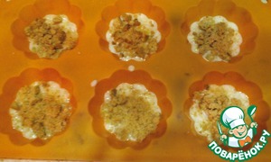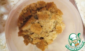 Печенье можно поломать, а можно оставить целым, если в формочки вмещается (Как я уже поняла - на мой взгляд лучше целым оставить, чтобы оно не размокло, а похрустывало как сюрприз)
