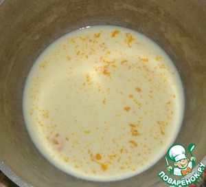Для этого смешиваем желток с молоком. Нагреваем до теплого состояния и добавляем сахар. Проварить до густоты. Остудить. -