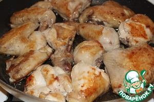 В большой тяжелой совороде обжарить в растительном масле куски курицы с обеих сторон, пока они не подрумянятся.