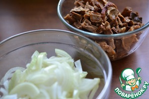 - Грибы (у меня сухие белые. замочить в воде на 2 часа.) — 400 г