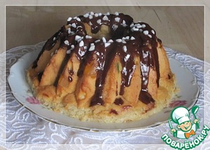 Теперь саварен можно украсить. Я растопила шоколад со сливками и полила пирог. Сверху присыпала кулинарным сахаром.