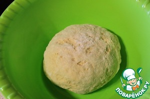 К подошедшей опаре добавить теплую ряженку, соль, масло и просеянную муку. Замесить эластичное тесто, скатать в шар и положить в глубокую миску, смазанную 1 ч. л. оливкового масла. Накрыть полотенцем и оставить на 1 час.