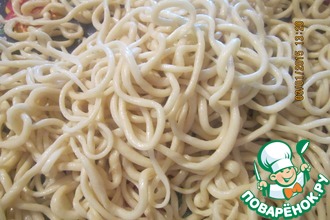 Сразу ставим ставим кастрюлю с водой на огонь. Я беру большую кастрюлю, наливаю 3 л воды, подсаливаю и вливаю 2 ст л растительного масла. Ждем когда вода закипит. -