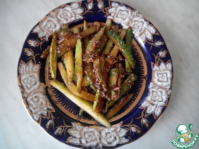 Данное блюдо готовится моментально. Огурцы должны обжариваться на сильном огне не более 3-х минут, поэтому прежде чем начать их обжарку все ингредиенты должны быть подготовлены.