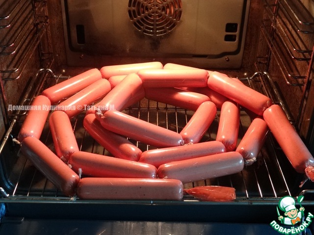 Выложить сардельки на решетку д/ш и готовить в режиме с вентилятором при 80-85 градусах (температуру поднимать плавно) до 69-72 градусов по Цельсию внутри сардельки; -