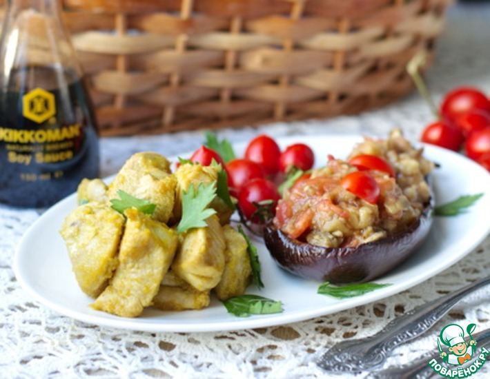 Рецепт «Куриная грудка с запеченными баклажанами и соевым соусом»: