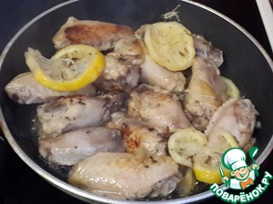 Достаньте после "массажа" крылышки из маринада, слегка обсушите их. На сковороде нагрейте масло, обжаривайте крылышки на раскаленном масле с двух сторон. Я обычно сюда же кидаю лимон из маринада, чтобы полностью извлечь из него аромат.
