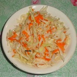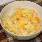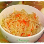 Капусту нашинковать, смешать с тертой морковью (мять не нужно).