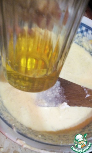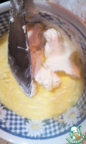 Добавляем к массе, аккуратно мешая снизу-вверх -