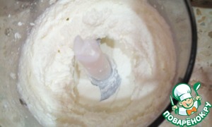 Творог протираем блендером до однородности. Такой он был
