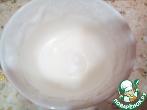 Белки взбить с щепоткой соли или ванилином до пены, мне аж пришлось перелить в 2 кружки