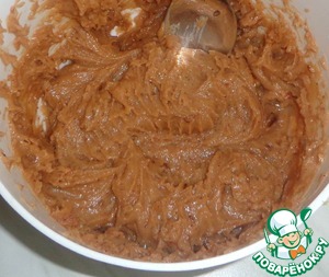 Добавить шоколад и перемешать. Масса должна стать однородной.