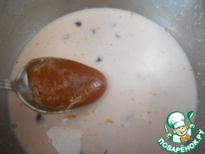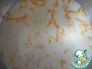 Добавить цедру в молоко и, помешивая, довести до кипения.