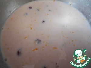 Добавить вишню в молоко. Если вишня свежая или размороженная, проварить, помешивая, 2 минуты (для замороженных ягод увеличить время до 5 минут). -