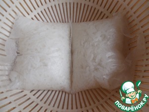 По прошествии 15 минут, пакетики с рисом достать и дать воде стечь.
