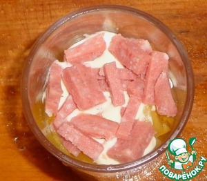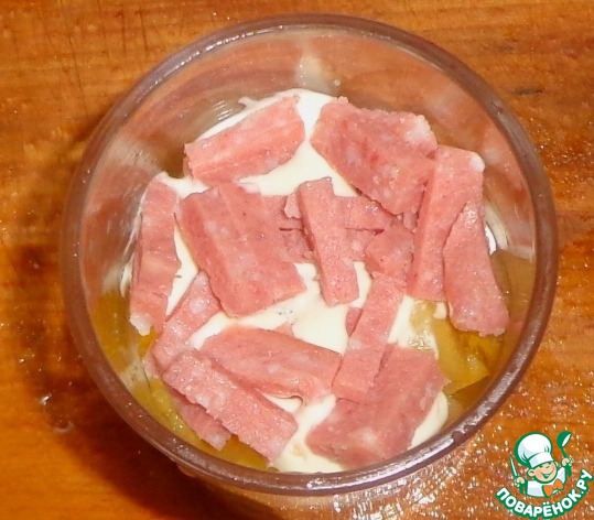 Еще один слой из колбасы. Заправка.