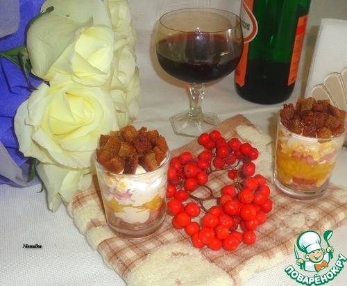 Веррины - это многослойная закуска, подаваемая к столу в небольших стаканчиках, в основном в 100-граммовых. Я хочу предложить свой вариант исполнения такой закуски.