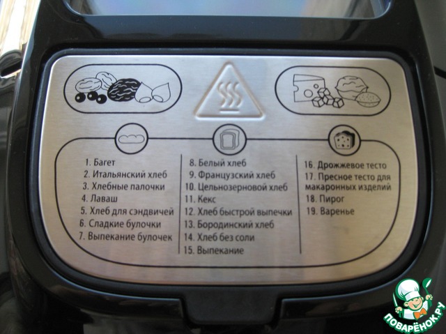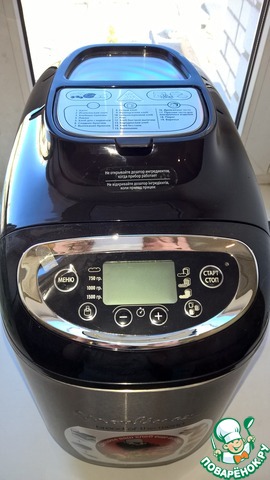 Выбираем программу. У меня программа 9. Вес хлеба 750г, цвет корочки светлый (моя ХП сильно зажаривает, поэтому слабая корочка у меня очень хрустящая). -