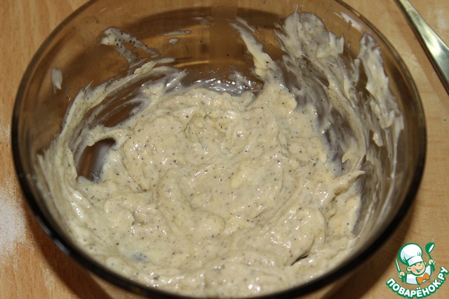 • 50 г размягченного сливочного масла смешать с растёртым чесноком, солью и перцем.