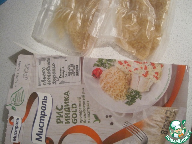 В кипящую воду кладем пакетик риса и варим 30 мин. (у меня ТМ Мистраль)