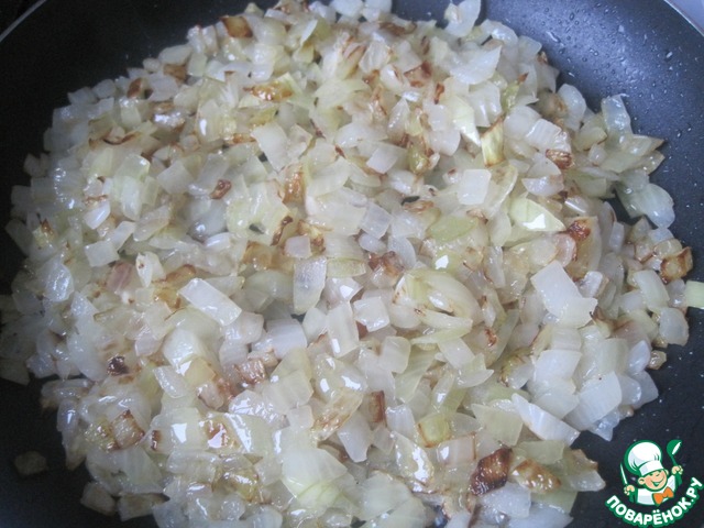 Лук нарезаем мелкими кубиками и обжариваем