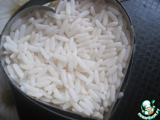 Готовый рис выкладываем при помощи выемки