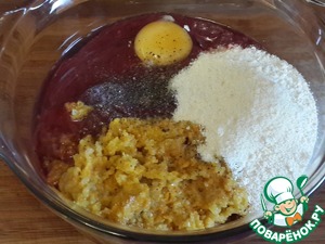 Добавьте специи, яйцо, манную крупу -