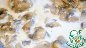 В сковороду к грибам влейте сливки и тушите пока половина сливок не выкипит