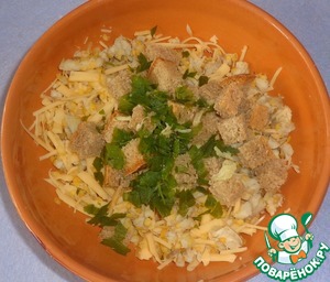 Добавить рубленную зелень по вкусу. Добавить соль, черный перец, мускатный орех.