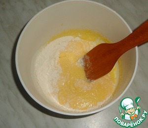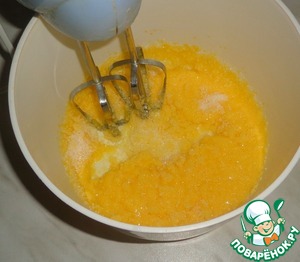 Яйца разделить на желтки и белки. Желтки растереть с сахаром.