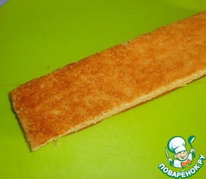 Половину полосок пропитать сладким компотом. Полоски промазать кремом и соединить между собой. Пропитанные полоски кладем в середину.